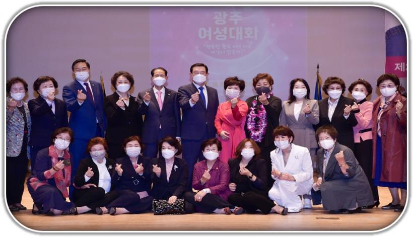 À̿뼷 ±¤ÁÖ±¤¿ª½ÃÀåÀÌ 15ÀÏ ¿ÀÈÄ ½Ãû ´ëȸÀǽǿ¡¼ ¿¸° Á¦28ȸ ±¤ÁÖ¿©¼º´ëȸ¿¡ Âü¼®ÇØ ±è¿ëÁý ±¤ÁÖ½ÃÀÇȸ ÀÇÀå, ¿À°æÀÚ ±¤Áֽÿ©¼º´ÜüÇùÀÇȸÀå, À̸íÀÚ ±¤ÁÖ¹«µî¿©¼º´ë»ó ¼ö»óÀÚ, ¿©¼º´Üü ȸ¿ø µî°ú ±â³äÃÔ¿µÀ» Çϰí ÀÖ´Ù.