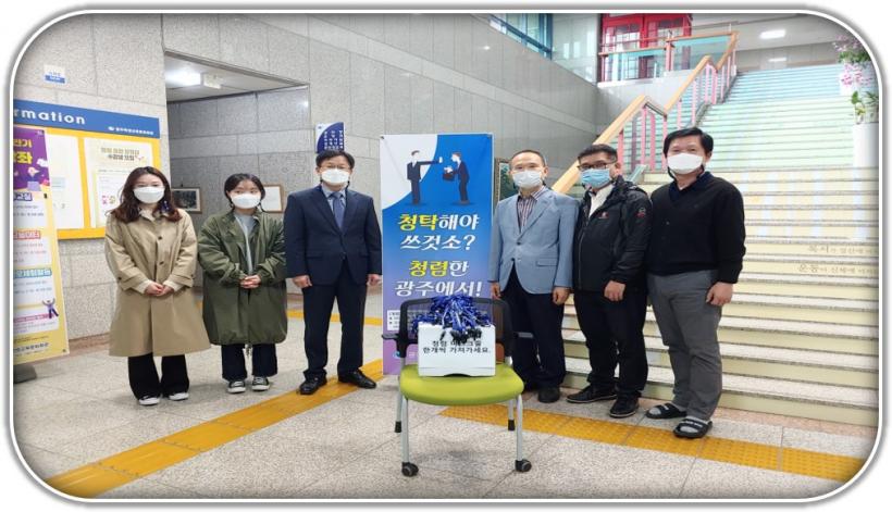 ±¤ÁÖÇлý±³À°¹®Èȸ°ü Àå¹®¼ö °üÀåÀ» Æ÷ÇÔÇÑ Á÷¿ø 30¿© ¸íÀº ȸ°üÀ» ¹æ¹®ÇÑ ½Ã¹Îµé¿¡°Ô ¡®Ã»·Å°ú ¹þÇÏ´Ù(û·ÅÀ» ¹®È·Î!)¡¯ ±Û±Í°¡ »õ°ÜÁø ¡®Ã»·Å ¸¶½ºÅ© ºÐ½Ç ¹æÁö ¸ñ°ÉÀÌ¡¯ 100¿© °³¸¦ ¹èÆ÷Çß´Ù.