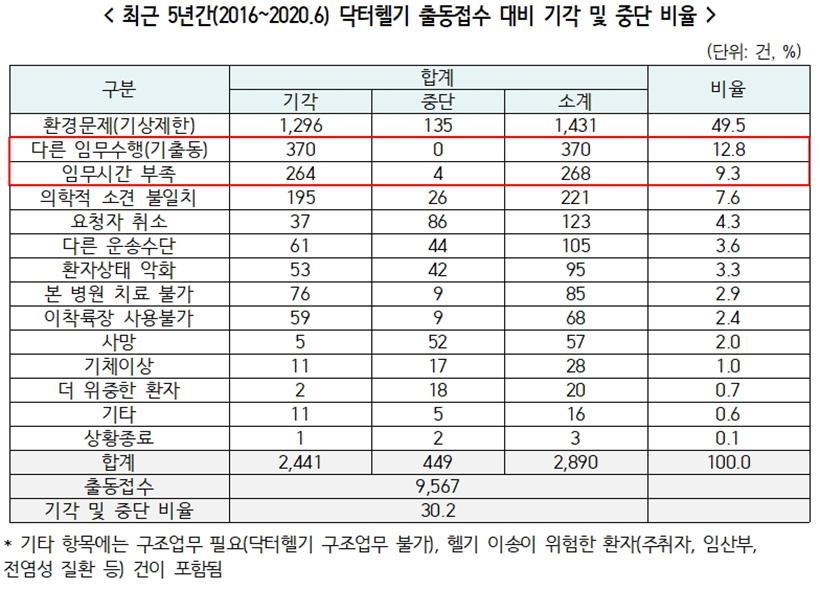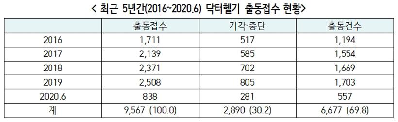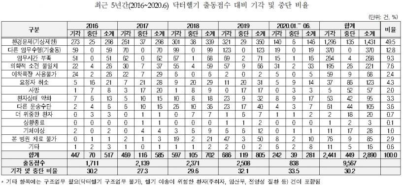 [°ø°£´º½º = ±è¼ö±Ù±âÀÚ] ÃÖ±Ù 5³â°£ ÀÀ±Þ¡¤¿Ü»óȯÀÚ À̼ۿ¡ Å« ±â¿©¸¦ Çϰí ÀÖ´Â ´ÚÅÍÇï±â°¡ Ã⵿ÇÏÁö ¸øÇÏ´Â ºñÀ²ÀÌ 30.2%¿¡ ´ÞÇØ ÀÌ¿¡ ´ëÇÑ ´ëÃ¥ÀÌ ÇÊ¿äÇÏ´Ù´Â ÁöÀûÀÌ Á¦±âµÆ´Ù.