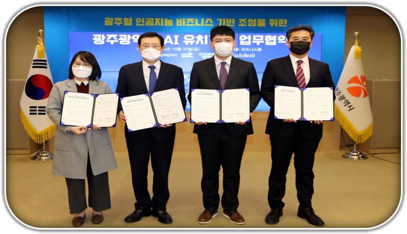 [°ø°£´º½º = ±è´ë¿µ±âÀÚ] ±¤ÁÖ±¤¿ª½Ã´Â 23ÀÏ ¿ÀÀü ½Ãû ºñÁî´Ï½º·ë¿¡¼ ÀΰøÁö´É ±â¾÷ÀÎ ¢ßÀ¯¼Ö, ¢ßÀ¯Å¬¸®µå¼ÒÇÁÆ®, ¢ßŬ·Îº¿°ú ±¤ÁÖÇü ÀΰøÁö´É ºñÁî´Ï½º ±â¹Ý Á¶¼ºÀ» À§ÇÑ 42~44¹øÂ° ¾÷¹«Çù¾àÀ» ü°áÇÏ°í °¢ ±â¾÷º° ¹ýÀμ³¸³ ¹× Áö¿ª»ç¹«¼Ò ¼³¸³À» ÅëÇØ ±¤ÁÖ ÀΰøÁö´É »ýŰè Á¶¼º¿¡ Àû±Ø Çù·ÂŰ·Î Çß´Ù.