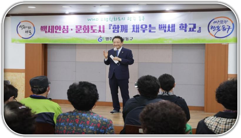ÀÓÅà µ¿±¸Ã»ÀåÀº ¡°¹é¼¼Çб³¸¦ ÅëÇØ ¾î¸£½ÅµéÀÌ ÀÚÁ¸°¨À» ȸº¹Çϰí, ÀÌ¿ôµé°ú ¼ÒÅëÇÏ¸ç º¸´Ù Ȱ±âÂù ÀλýÀ» º¸³¾ ¼ö Àֱ⸦ ¹Ù¶õ´Ù¡±¸é¼ ¡°Áö¿ª»çȸ µ¹º½ ¾ÈÀü¸Á ¸ðµ¨ÀÎ ¡®¿ì¸® ¸¶À» ¹é¼¼Ä£±¸¡¯ »ç¾÷°ú ¾î¸£½ÅµéÀÇ Á¤½Å °Ç°À» À§ÇÑ ¡®ÇÔ²² ä¿ì´Â ¹é¼¼Çб³¡¯ »ç¾÷À» ¼º°øÀûÀ¸·Î ÃßÁøÇØ °í·Éģȵµ½Ã Á¶¼º ¸ðµ¨ÀÇ ¸ð¹ü»ç·Ê°¡ µÇµµ·Ï ÃÖ¼±À» ´Ù Çϰڴ١±°í ¸»Çß´Ù.
