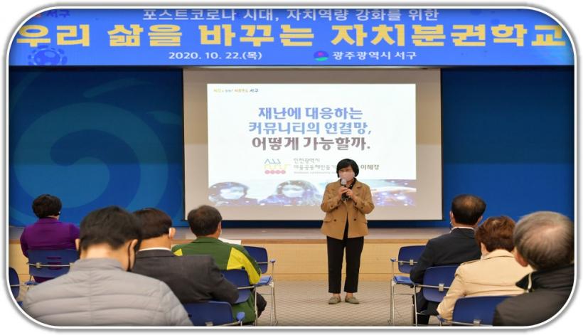 ¡®Àç³(Äڷγª)¿¡ ´ëÀÀÇÏ´Â Ä¿¹Â´ÏƼÀÇ ¿¬°á¸Á, ¾î¶»°Ô °¡´ÉÇÒ±î?¡¯ ¶ó´Â ÁÖÁ¦·Î ÁøÇàµÈ °ÀÇ´Â Äڷγª À§±â¼Ó ¸¶À»°øµ¿Ã¼ Á߿伺°ú ¿ªÇÒ, ÀÚġȰµ¿ ¸Å´º¾ó Á¦ÀÛ µî¿¡ ´ëÇØ ´Ù¾çÇÑ »ç·Ê¸¦ ÅëÇØ Áֹεé°ú °ø°¨´ë¸¦ Çü¼ºÇÏ´Â ÀÚ¸®·Î ±¸¼ºµÆ´Ù.