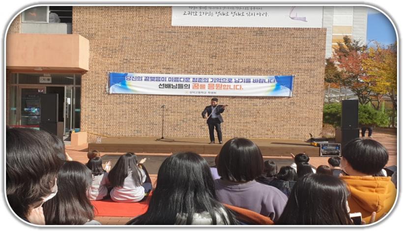 ÇϹݱ⠱âȹ»ç¾÷ ¡®Ã£¾Æ°¡´Â Èú¸µ½ºÄð ÄܼƮ¡¯ÀÇ ÀÏȯÀ¸·Î ÁøÇàÇÑ À̹ø °ø¿¬Àº Äڷγª19 Àå±âÈ·Î À§ÃàµÅÀÖ´Â Çб³ÇöÀå¿¡ À½¾ÇÀ¸·Î Ȱ·ÂÀ» ºÒ¾î³Ö¾î ¼ö´ÉÀ» ¾ÕµÎ°í ±äÀåÇϸç Çо÷¿¡ ¸ôµÎÇϰí ÀÖ´Â °í3ÇлýµéÀ» À§·ÎÇÏ°í °Ý·ÁÇϱâ À§ÇØ ¸¶·ÃµÆ´Ù.