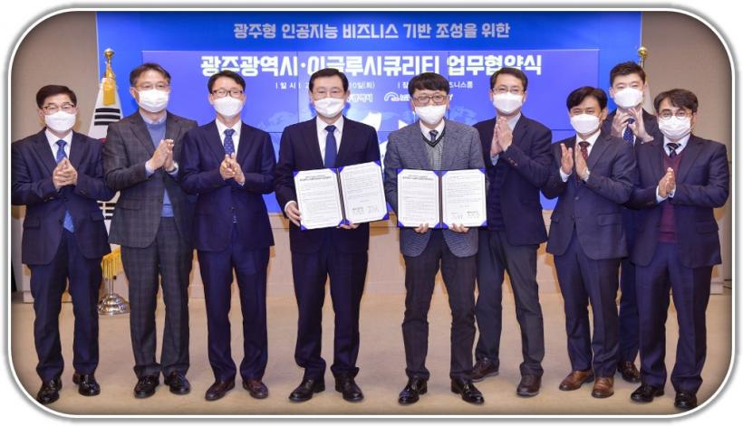 [°ø°£´º½º = ±è´ë¿µ±âÀÚ] ±¤ÁÖ±¤¿ª½Ã´Â 10ÀÏ ¿ÀÀü ½Ãû ºñÁî´Ï½º·ë¿¡¼ ÀΰøÁö´É À¯Ä¡±â¾÷ÀÎ ¢ßÀ̱۷ç½ÃÅ¥¸®Æ¼¿Í ±¤ÁÖÇü ÀΰøÁö´É ºñÁî´Ï½º ±â¹Ý Á¶¼ºÀ» À§ÇÑ 51¹øÂ° ¾÷¹«Çù¾àÀ» ü°áÇÏ°í ¹ýÀμ³¸³ ¹× Áö¿ª»ç¹«¼Ò ¼³¸³À» ÅëÇØ ±¤ÁÖ ÀΰøÁö´É »çÀ̹ö º¸¾È »ê¾÷ À°¼º¿¡ Àû±Ø Çù·ÂŰ·Î Çß´Ù.