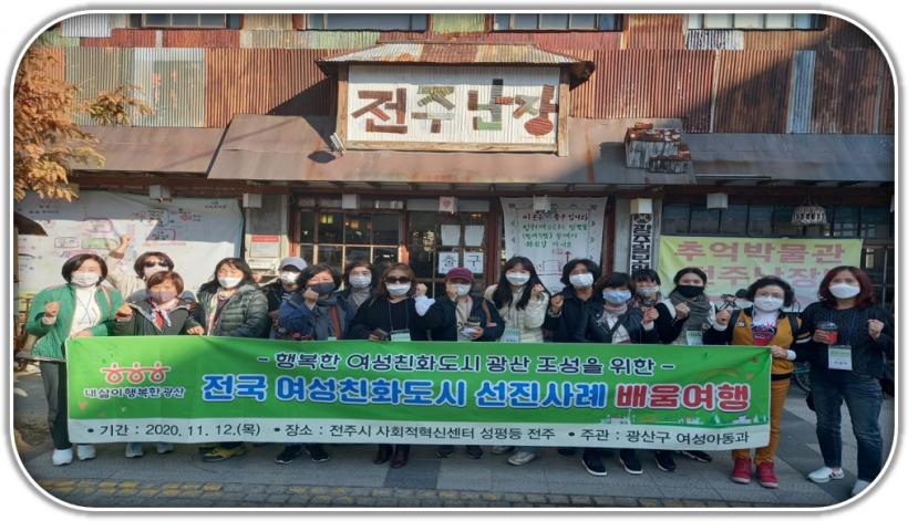 ±¤»ê±¸ ½Ã¹ÎÂü¿©´ÜÀº À̳¯ ÀüÁÖÀÇ »ç·Ê¸¦ ޹æÇϰí, ±¤»ê±¸ÀÇ Æ¯¼º¿¡ ¸Â´Â ¿©¼ºÄ£Èµµ½Ã »ç¾÷ ¹æ¾ÈÀ» ¸ð»öÇÏ´Â µî ¹è¿ò¿©Çà ÀÏÁ¤À» ¼ÒÈÇß´Ù.