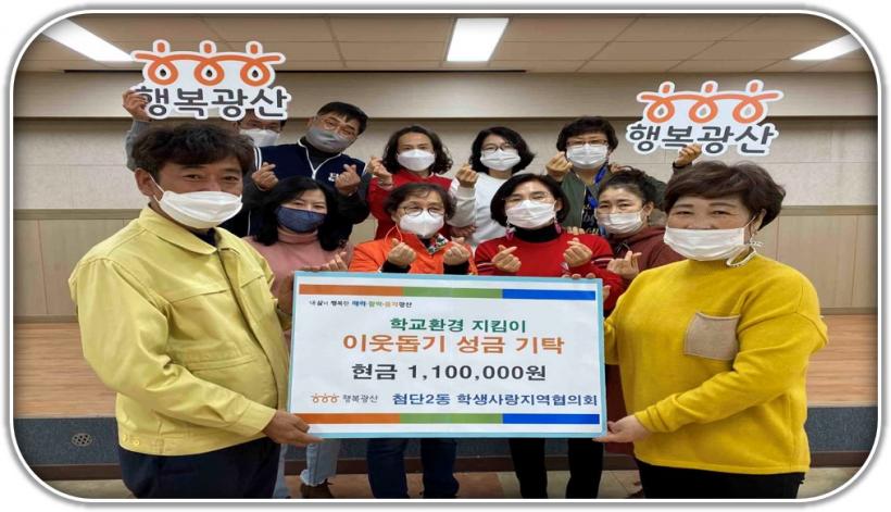 [°ø°£´º½º = ±è¿îö±âÀÚ] ±¤»ê±¸ ÷´Ü2µ¿ Çлý»ç¶ûÁö¿ªÇùÀÇȸ(ȸÀå À±¾ÖÀÚ)°¡ Áö³ 17ÀÏ µ¿ ÇàÁ¤º¹Áö¼¾Å͸¦ ¹æ¹®ÇØ °¡Á¤ ÇüÆíÀÌ ¾î·Á¿î ÇлýÀ» À§ÇØ ½á´Þ¶ó¸ç ÀÌ¿ôµ½±â ¼º±Ý 110¸¸¿øÀ» ±âºÎÇß´Ù.