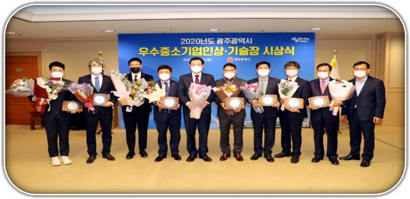 [°ø°£´º½º = ±è´ë¿µ±âÀÚ] ±¤ÁÖ±¤¿ª½Ã´Â 2020³â ¿ì¼öÁß¼Ò±â¾÷ÀÎ 5¸í°ú ±â¼úÀå 3¸íÀ» ¼±Á¤Çϰí 20ÀÏ ½Ãû ºñÁî´Ï½º·ë¿¡¼ »óÆÐ¸¦ ¼ö¿©Çß´Ù.