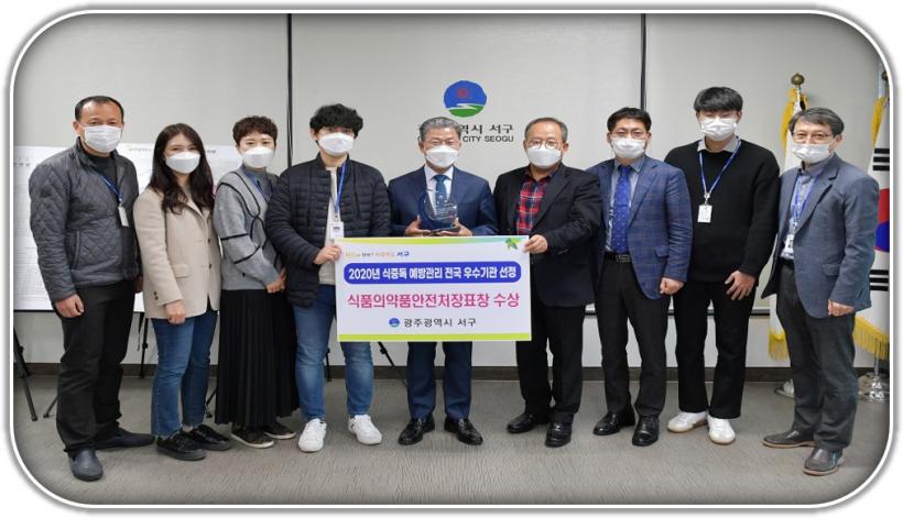 [°ø°£´º½º = ±è´ë¿µ±âÀÚ] ±¤ÁÖ ¼±¸(±¸Ã»Àå ¼´ë¼®)°¡ ½ÄÁßµ¶ ¿¹¹æ°ü¸®¸¦ Àû±Ø ÃßÁøÇÑ °ø·Î¸¦ ÀÎÁ¤¹Þ¾Æ 2020³â ½ÄÁßµ¶ ¿¹¹æ°ü¸® ¿ì¼ö±â°ü ½ÄǰÀǾàǰ¾ÈÀüóÀå»óÀ» ¼ö»óÇß´Ù.