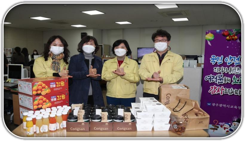 8ÀÏ ±¤Áֽñ³À°Ã» ·ùÇý¼÷ ºÎ±³À°°¨°ú Á÷¿øµéÀº µ¿¡¤³²¡¤¼±¸Ã» º¸°Ç¼Ò ¼±º°Áø·á¼Ò¸¦ ¹æ¹®ÇØ À§¹®Ç°(»÷µåÀ§Ä¡, °úÀÏ µî)À» Àü´ÞÇÏ°í °Ý·ÁÇÏ´Â ½Ã°£À» °¡Á³´Ù. ¿À´Â 9ÀÏ ±¤»ê¡¤ºÏ±¸Ã» º¸°Ç¼Ò ¼±º°Áø·á¼Ò¸¦ À§¹®ÇÒ ¿¹Á¤ÀÌ´Ù.
