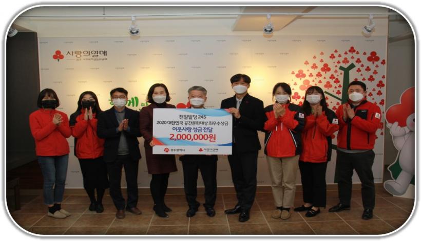 [°ø°£´º½º = ±è´ë¿µ±âÀÚ] ±¤ÁÖ±¤¿ª½Ã´Â Áö³ 11¿ù18ÀÏ ¹®ÈüÀ°°ü±¤ºÎ¿¡¼ ½Ç½ÃÇÑ ¡®2020 ´ëÇѹα¹ °ø°£¹®È´ë»ó¡¯¿¡¼ ÃÖ¿ì¼ö»óÀ» ¼ö»óÇÏ¸é¼ ¹ÞÀº »ó±Ý 200¸¸¿øÀ» 9ÀÏ ±¤ÁÖ»çȸº¹Áö°øµ¿¸ð±Ýȸ¿¡ ±âºÎÇß´Ù.