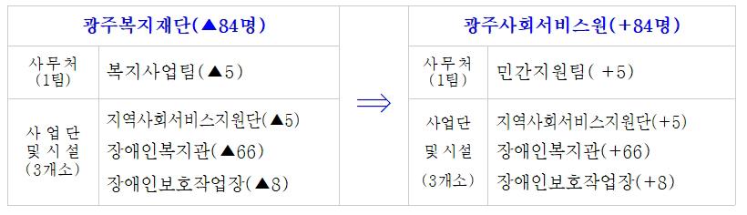 ƯÈ÷ ±¤ÁÖº¹ÁöÀç´ÜÀÇ Á¤Ã¥¿¬±¸±â´É °È¿Í È¿À²ÀûÀÎ ¿î¿µÀ» À§ÇØ Àå¾ÖÀκ¹Áö°ü, º¸È£ÀÛ¾÷Àå, Áö¿ª»çȸ¼ºñ½ºÁö¿ø´Ü µî 3°³ ½Ã¼³À» »çȸ¼ºñ½º¿øÀ¸·Î À̰üÇϰí, Àç´Ü »ç¹«Ã³¸¦ Á¦2û»ç(±¸ º¸°Çȯ°æ¿¬±¸¿ø)·Î ÀÌÀüÇØ ±¤ÁÖº¹Áö ÄÁÆ®·Ñ Ÿ¿ö·Î Æ¯È ¿î¿µÇÏ´Â µîÀÇ Á¶Á÷Çõ½ÅÀ» ÃßÁøÇϱâ·Î ÀǰßÀ» ¸ð¾Ò´Ù.