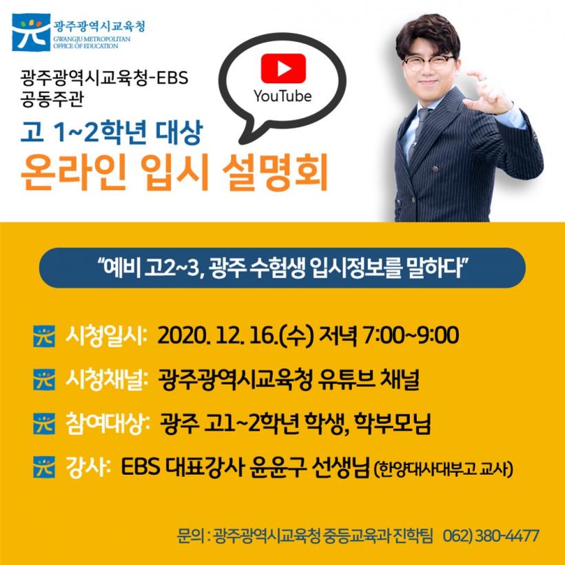 [°ø°£´º½º = ±è¼ö±Ù±âÀÚ] ±¤Áֽñ³À°Ã»ÀÌ EBS¿Í °øµ¿ ÁÖ°üÀ¸·Î ¿À´Â 16ÀÏ ¿ÀÈÄ 7½ÃºÎÅÍ ¿¹ºñ °í2~3Çгâ Çлý ´ë»ó ¿Â¶óÀÎ ÀԽü³¸íȸ¸¦ °³ÃÖÇÑ´Ù°í 14ÀÏ ¹àÇû´Ù.
