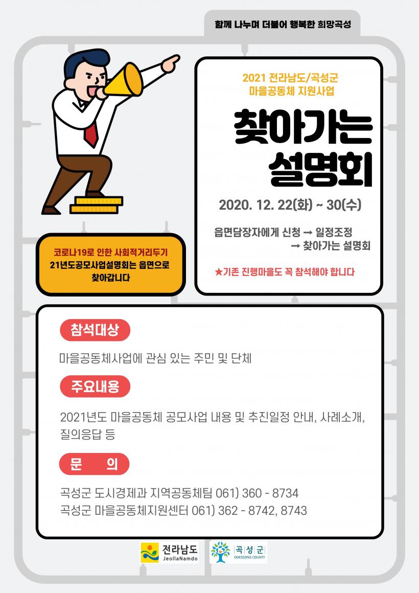 [°ø°£´º½º = ±è¿îö±âÀÚ] °î¼º±º ¸¶À»°øµ¿Ã¼ Áö¿ø¼¾ÅͰ¡ ´Ù°¡¿À´Â 2021³â ¸¶À»°øµ¿Ã¼ Ȱµ¿Áö¿ø °ø¸ð»ç¾÷À» È«º¸Çϱâ À§ÇØ¡°Ã£¾Æ°¡´Â ¼³¸íȸ¡±¸¦ °³ÃÖÇÑ´Ù.