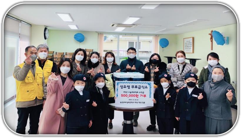 [°ø°£´º½º = ±è¼ö±Ù±âÀÚ] ±¤ÁÖ±³´ëºÎ¼³ÃÊ 1Çгâ ÇлýµéÀÌ Áö³ 23ÀÏ ³²±¸ ¼ÒÀç ¡®¼º¿ä¼Á »ç¶ûÀÇ ½Ä´ç¡¯À» ¹æ¹®ÇØ ¡®2020Çг⵵ ÅÔ¹ç ³ª´® ÀåÅÍ ¹× ¾Ë¶ã½ÃÀ塯¿¡¼ ¾òÀº ¼öÀÍ±Ý 50¸¸ ¿øÀ» ±âºÎÇß´Ù.