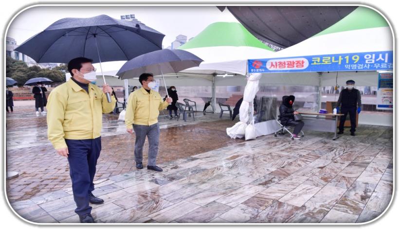 [°ø°£´º½º = ±è´ë¿µ±âÀÚ] À̿뼷 ±¤ÁÖ±¤¿ª½ÃÀåÀº ÀÏ¿äÀÏÀÎ 27ÀÏ ±¤ÁÖ½Ãû ±¤Àå Àӽà ¼±º°°Ë»ç¼Ò¿Í ±¤ÁÖÀϰ¿øÀ» Â÷·Ê·Î ¹æ¹®ÇØ ÇöÀåÀÇ Äڷγª19 ´ëÀÀ »óȲÀ» Á¡°ËÇϰí ÀÇ·áÁøµéÀ» °Ý·ÁÇß´Ù.