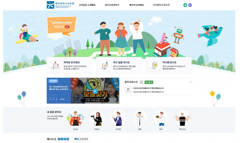 7ÀÏ ±¤Áֽñ³À°Ã»¿¡ µû¸£¸é ±âÁ¸ ½Ã±³À°Ã» ȨÆäÀÌÁö´Â ¾î¸°À̵éÀÌ ÀÌ¿ëÇϱ⿡´Â º¹ÀâÇØ ¾ÆÀ̵éÀÇ ´«³ôÀÌ¿¡ ¸ÂÃá ¡®¾î¸°ÀÌ È¨ÆäÀÌÁö¡¯ ½Å¼³ ÀÛ¾÷À» ÃßÁøÇß´Ù. ¡®¾î¸°ÀÌ È¨ÆäÀÌÁö¡¯´Â À¯Ä¡¿ø»ý ¹× ÃʵîÇлýµéÀÌ Ä£±ÙÇÏ°Ô ÀÌ¿ëÇÒ ¼ö ÀÖ´Â ¸Þ´º¿Í µðÀÚÀÎÀ¸·Î ÀÌ·ïÁø´Ù.