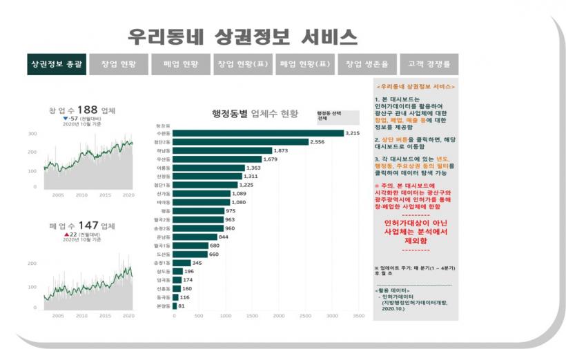 ±¤»ê±¸ÀÇ À̹ø ¼ºñ½º´Â ±¸ »ó±Ç »ç¾÷üÀÇ Ã¢¾÷¡¤Æó¾÷ ÇöȲ Á¤º¸¸¦ Á¦°øÇØ Áö¿ª °æÁ¦»óȲÀ» °´°üÀûÀ¸·Î º¼ ¼ö ÀÖµµ·Ï ÇÑ °ÍÀ¸·Î, ƯÈ÷ â¾÷À» ¾ÕµÐ »óÀε鿡°Ô ÁÁÀº Âü°íÀÚ·á°¡ µÉ °ÍÀ¸·Î º¸ÀδÙ.