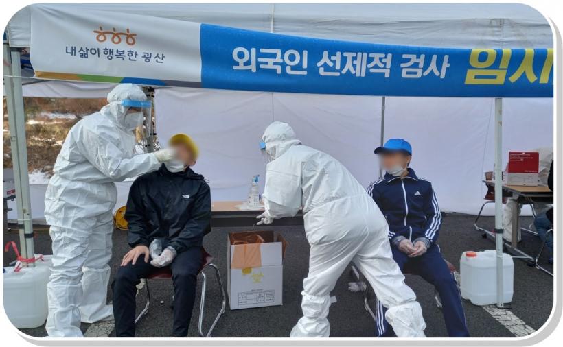 À̹ø °Ë»ç¸¦ À§ÇØ ±¤»ê±¸´Â ³²ºÎ´ë¡¤È£³²´ë, ¿ù°î2µ¿ ÇàÁ¤º¹Áö¼¾ÅÍ, Æòµ¿¡¤Çϳ²»ê´Ü¿¡ Àӽü±º°Áø·á¼Ò¸¦ ¼³Ä¡ ¿î¿µÇÑ´Ù. ÀÌ ¼±º°Áø·á¼ÒµéÀ» Áß½ÉÀ¸·Î ¿Ü±¹ÀÎ À¯Çлý 1,922¸í, ÀÌÁֳ뵿ÀÚ 5,702¸í, °í·ÁÀÎÁֹΠ5,455¸íÀÇ °Ë»ç¸¦ ½Ç½ÃÇÑ´Ù´Â ¸ñÇ¥´Ù. ÀÌ ¼öÄ¡´Â ±¤»ê±¸ °ÅÁÖ ¿Ü±¹ÀÎ 17,442¸í Áß Çѱ¹ ±¹Àû ¹Ì Ãëµæ °áÈ¥ÀÌÁÖ¿©¼º Á¤µµ¸¸ ºüÁø ±Ô¸ð¿©¼ »ç½Ç»ó ¿Ü±¹ÀÎ Àüü¿¡ ÇØ´çµÈ´Ù.