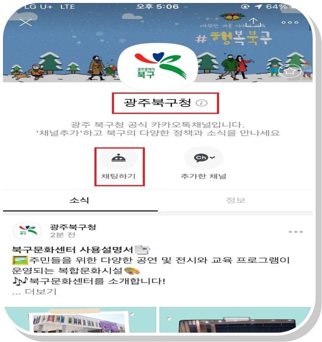 ÀÌ¿ë¹æ¹ýÀº īī¿ÀÅå °Ë»öâ¿¡ ¡®±¤Áֺϱ¸Ã»¡¯À» °Ë»öÇØ ä³Î Ãß°¡ ÈÄ Ã¤ÆÃâ ÇÏ´Ü¿¡ Áú¹®À» ÀÔ·ÂÇϰųª äÆÃâ¿¡¼ Á¦°øµÇ´Â ¸Þ´º¸¦ ¼±ÅÃÇϸé ÇàÁ¤, ±³Åë, ¼¼±Ý, º¹Áö µî¿¡ ´ëÇÑ Á¤º¸¸¦ ¾È³»¹ÞÀ» ¼ö ÀÖ´Ù.
