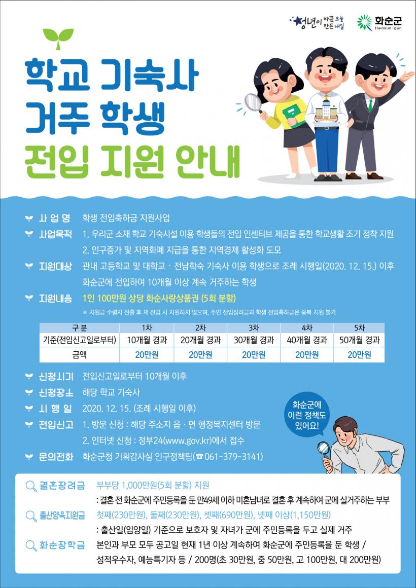 Çлý ÀüÀÔ ÃàÇϱÝÀº ȼø Áö¿ª¿¡ ÀÖ´Â °íµîÇб³¿Í ´ëÇб³, Àü³²Çм÷ µî ±â¼÷ ½Ã¼³¿¡ ÀÔÁÖÇÑ ÇлýÀÌ Áö¿ø ´ë»óÀÌ´Ù. Á¶·Ê ½ÃÇàÀÏ(2020. 12. 15.) ÀÌÈÄ È¼ø±º¿¡ ÀüÀÔÇØ Áֹεî·ÏÀ» µÎ°í °è¼Ó °ÅÁÖÇϸé Áö±ÞµÈ´Ù.