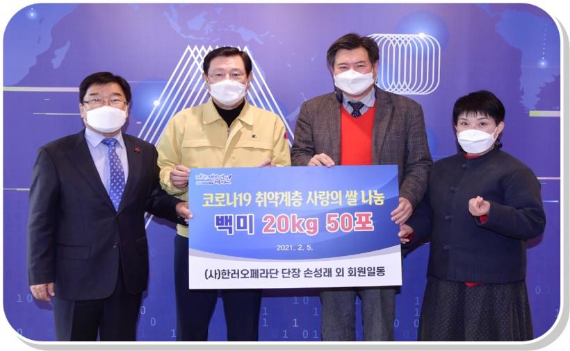 (»ç)ÇÑ·¯¿ÀÆä¶ó´ÜÀº Äڷγª19 Ãë¾à°èÃþÀ» À§ÇØ (»ç)±¤ÁÖ±¤¿ª½ÃÀÚ¿øºÀ»ç¼¾ÅÍ¿¡ ¹é¹Ì 20§¸ 50Æ÷¸¦ Àü´ÞÇß´Ù.