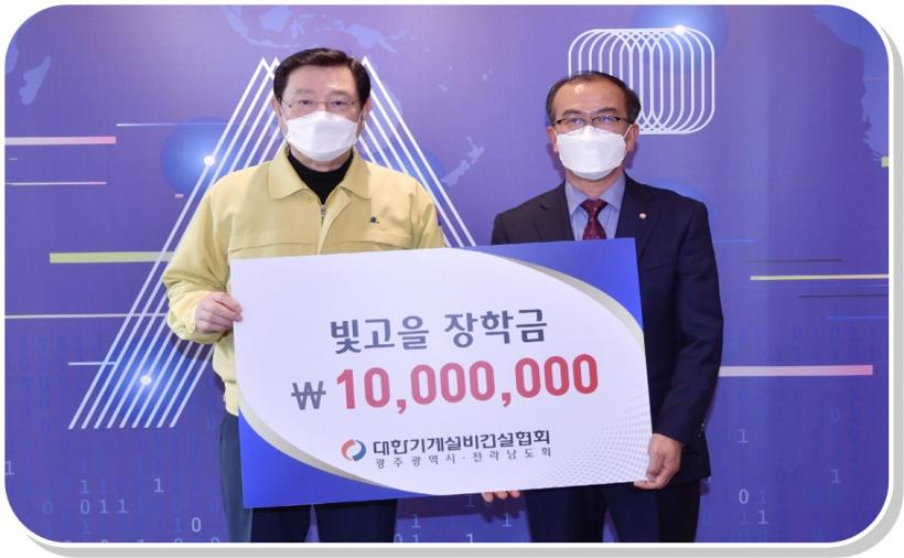 ÀÌ¾î ¿¸° ´ëÇѱâ°è¼³ºñ°Ç¼³Çùȸ ±¤ÁÖ¡¤Àü³²µµÈ¸ÀÇ ¡®ºû°íÀ»ÀåÇÐ±Ý ±âʽġ¯¿¡¼´Â ÃÖºÀÈ£ ´ëÇѱâ°è¼³ºñ°Ç¼³Çùȸ ±¤ÁÖ¡¤Àü³²µµÈ¸ ȸÀåÀÌ ºû°íÀ»ÀåÇÐÀç´Ü¿¡ ÀåÇÐ±Ý 1000¸¸¿øÀ» ±âŹÇß´Ù.