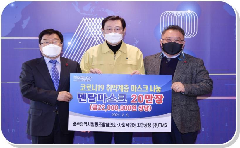 ÀÌ ÀÚ¸®¿¡¼ ±¤ÁÖ½ÃÇùµ¿Á¶ÇÕÇùÀÇȸ´Â Ãë¾à°èÃþÀÇ Äڷγª19 °¨¿° ¿¹¹æÀ» À§ÇØ ¸¶½ºÅ© 10¸¸ÀåÀ» (»ç)±¤ÁÖ±¤¿ª½ÃÀÚ¿øºÀ»ç¼¾ÅÍ¿¡ Àü´ÞÇß´Ù.