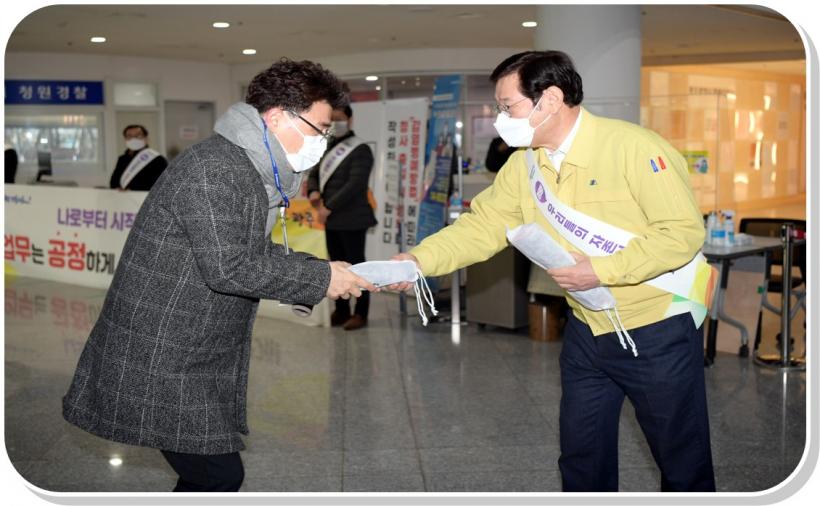 À̿뼷 ±¤ÁÖ±¤¿ª½ÃÀåÀÌ 9ÀÏ ¿ÀÀü ½Ãû 1Ãþ ·Îºñ¿¡¼ Ãâ±ÙÇÏ´Â Á÷¿øµé¿¡°Ô û·Å ¹®±¸°¡ ÀûÈù ¸¶¿ì½ºÆÐµå¸¦ Àü´ÞÇÏ¸ç ¼³ ¸íÀý °øÁ÷ÀÚ Ã»·ÅÄÍÆäÀÎÀ» ÆîÄ¡°í ÀÖ´Ù.
