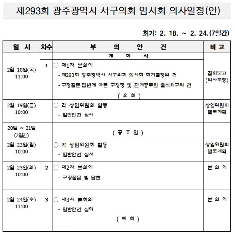 [°ø°£´º½º = ±è¼ö±Ù±âÀÚ] ±¤ÁÖ ¼±¸ÀÇȸ(ÀÇÀå ±èÅ¿µ)´Â ¿À´Â 18ÀϺÎÅÍ 24ÀϱîÁö 7Àϰ£ Á¦293ȸ ÀÓ½Ãȸ¸¦ ¿°í Á¶·Ê¾È ¹× 5ºÐÀÚÀ¯¹ß¾ð, ±¸Á¤Áú¹® »çÇ× µîÀÇ ¾È°ÇÀ» ´Ù·é´Ù.