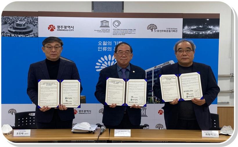 [°ø°£´º½º = ±è¼ö±Ù±âÀÚ] ±¤ÁÖ±¤¿ª½Ã 5¡¤18¹ÎÁÖȿ±â·Ï°üÀº Áö³ 19ÀÏ ¿ÀÈÄ 5¡¤18±â·Ï°ü¿¡¼ 5¡¤18±â³äÀç´Ü, Àü³²´ëÇб³ 5¡¤18¿¬±¸¼Ò¿Í ¡®5¡¤18±â·Ï¹° À¯³×½ºÄÚ ¼¼°è±â·ÏÀ¯»ê µîÀç 10Áֳ⡯ ¹× ¡®5¡¤18±â·Ï¹° ÅëÇÕDB±¸Ã࡯À» À§ÇÑ ¾÷¹«Çù¾àÀ» ü°áÇß´Ù.