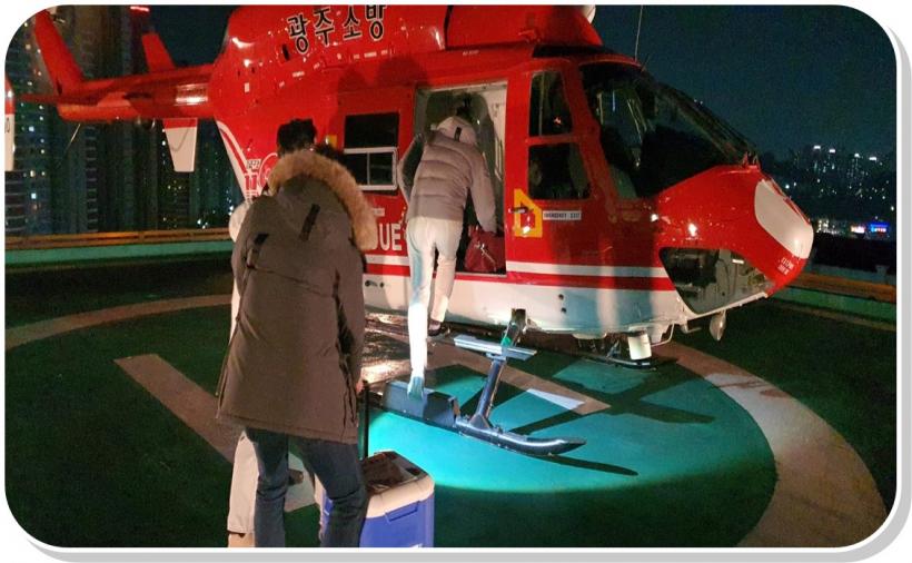 ±¤ÁÖ¼Ò¹æÇï±â´Â ÀûÃâ¼ö¼úÀÌ ÁøÇàµÇ´Â Á¶¼±´ëº´¿ø¿¡¼ ´ë±â ÈÄ ¿ÀÈÄ 7½Ã34ºÐ ÀÌ·úÇØ 1½Ã°£14ºÐ°£ÀÇ ¾ß°£(½Ã°è)ºñÇàÀ» ¸¶Ä¡°í ¿ÀÈÄ 8½Ã48ºÐ¿¡ ±âÁõ ½ÉÀåÀ» ¼¿ï »ï¼ºº´¿ø ÀÌ½ÄÆÀ¿¡ ¹«»çÈ÷ Àü´ÞÇß´Ù.