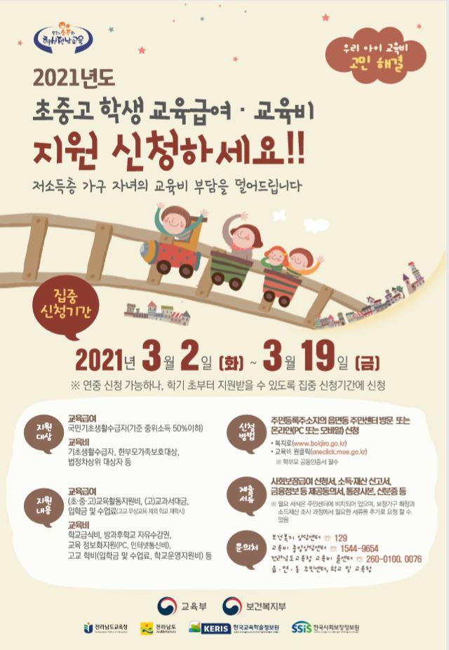 Àü¶ó³²µµ±³À°Ã»Àº ¿À´Â 3¿ù 2ÀÏ(È)ºÎÅÍ 3¿ù 19ÀÏ(±Ý)±îÁö¡®ÃÊ¡¤Áß¡¤°í Çлý ±³À°±Þ¿© ¹× ±³À°ºñ(ÀÌÇÏ ±³À°ºñ) Áö¿ø¡¯ÁýÁß ½Åû ±â°£À» ¿î¿µÇÑ´Ù°í 24ÀÏ(¸ñ) ¹àÇû´Ù.