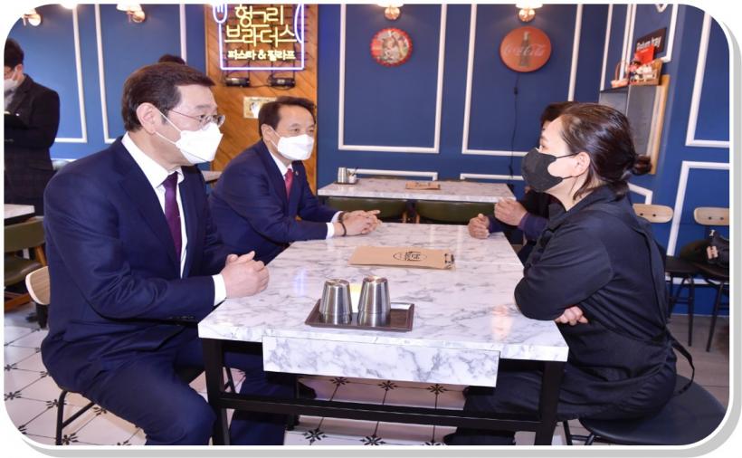 ÀÌ ½ÃÀåÀº ¸ÕÀú ½Ã°¡ Äڷγª19·Î ÇÇÇØ¸¦ ÀÔÀº ¼Ò»ó°øÀΰú ÀÚ¿µ¾÷ÀÚ¿¡°Ô Áö¿øÇÑ ¹«´ãº¸¡¤¹«ÀÌÀÚ¡¤¹«º¸Áõ·á 3Ùí ÇýÅÃÀÇ Æ¯·Êº¸Áõ À¶ÀÚ¸¦ ¹ÞÀº Ä«Æä, À½½ÄÁ¡ 3°³ Á¡Æ÷¿Í ÇöÀç ÃßÁø Áß¿¡ ÀÖ´Â ±¤ÁÖÇü ¹è´Þ¾Û Âü¿© Á¡Æ÷ µîÀ» ¹æ¹®ÇØ ½ÃÀÇ ¹Î»ýÁö¿øÀÌ ÇöÀå¿¡¼ È¿°ú¸¦ ³»°í ÀÖ´ÂÁö Á÷Á¢ »ìÆñ´Ù.