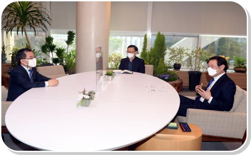 À̿뼷 ±¤ÁÖ±¤¿ª½ÃÀåÀÌ 9ÀÏ ¿ÀÈÄ ½Ãû Á¢°ß½Ç¿¡¼ È«Á¤±â ȯ°æºÎ Â÷°üÀ» ¸¸³ª ȯ°æ Çö¾È¿¡ ´ëÇØ ÀǰßÀ» ³ª´©°í ÀÖ´Ù.