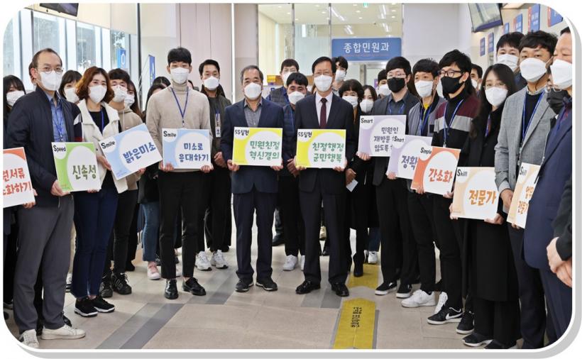 ¼Û±Í±Ù ±º¼ö´Â ¡°±º¹ÎÀÇ ¸¸Á·µµ¸¦ ³ôÀ̱â À§ÇØ Á÷¿ø ¸ðµÎ°¡ È¥¿¬ÀÏü°¡ µÇ¾î ±àÁ¤ÀûÀÎ ¸¶Àεå¿Í Àû±ØÀûÀÎ ÀÚ¼¼·Î ¾÷¹« ó¸® ½Ã ¾çÁúÀÇ ÇàÁ¤¼ºñ½º¸¦ Á¦°øÇÏ°Ô µÉ °Í¡±À̶ó¸ç ¡°¹Î¿ø½ÇÀº ±ºÃ»ÀÇ ¾ó±¼ÀÌ°í ¶ÇÇÑ, ùÀλóÀÌ ¸Å¿ì Áß¿äÇϹǷΠ¾î¶°ÇÑ »óȲ¿¡¼µµ Ä£ÀýÀ» ¿°µÎ ÇÏ¸é¼ ¹Î¿øÀ» ó¸®ÇØ Áֱ⠹ٶõ´Ù¡±°í ´çºÎÇß´Ù.