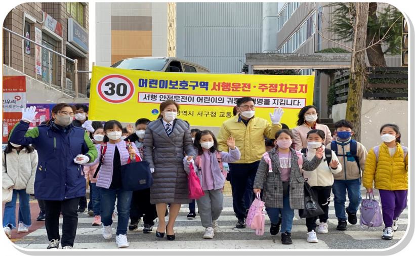 [°ø°£´º½º = ±è¼ö±Ù±âÀÚ] ±¤ÁÖ±¤¿ª½Ã ¼±¸(±¸Ã»Àå ¼´ë¼®)°¡ Áö³ 10ÀÏ °³ÇÐÀ» ¸ÂÀÌÇÑ ¾î¸°ÀÌÀÇ ±³Åë¾ÈÀüÀ» À§ÇØ ÈÁ¤µ¿¿¡ À§Ä¡ÇÑ ¼ºÁøÃʵîÇб³ Àαٿ¡¼ ±³Åë¾ÈÀü Ä·ÆäÀÎÀ» ½Ç½ÃÇß´Ù.