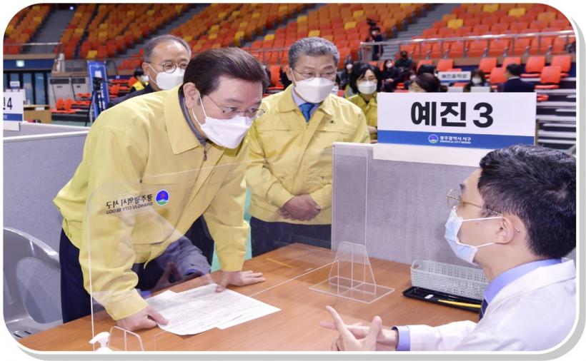 [°ø°£´º½º = ±è¼ö±Ù±âÀÚ] À̿뼷 ±¤ÁÖ±¤¿ª½ÃÀåÀº 19ÀÏ ¿ÀÀü ¼±¸ ¿°ÁÖÁ¾ÇÕüÀ°°ü¿¡ ¸¶·ÃµÈ Äڷγª19 ¼±¸¿¹¹æÁ¢Á¾¼¾Å͸¦ ã¾Æ À̳¯ ÁøÇàµÈ Äڷγª19 Áö¿ª¿¹¹æÁ¢Á¾¼¾ÅÍ ¸ðÀÇÈÆ·Ã °úÁ¤À» »ìÆìº¸°í °ü°èÀÚµéÀ» °Ý·ÁÇß´Ù.
