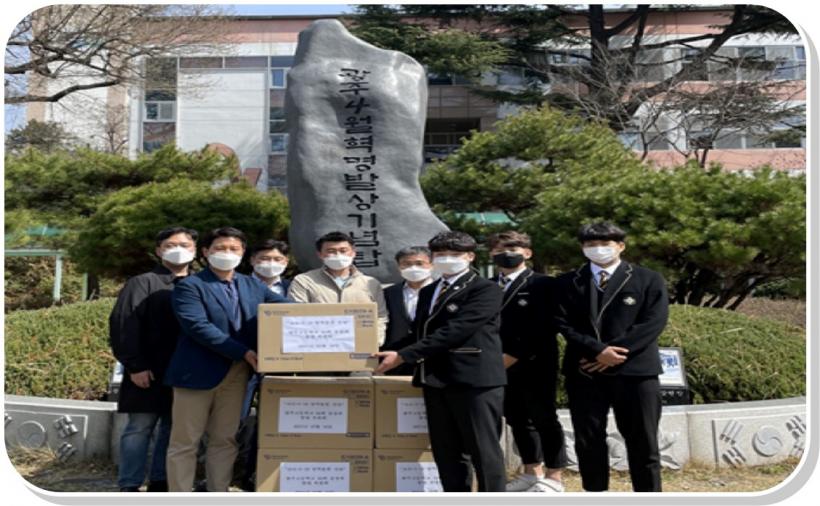 [°ø°£´º½º = ±è¼ö±Ù±âÀÚ] ±¤ÁÖ°í 50ȸ µ¿¹®È¸°¡ Áö³ 19ÀÏ ±¤ÁÖ°í ÈĹèµéÀ» À§ÇÑ KF94¸¶½ºÅ© 2,000¸Å¸¦ ±¤ÁÖ°í¿¡ ±âºÎÇß´Ù.