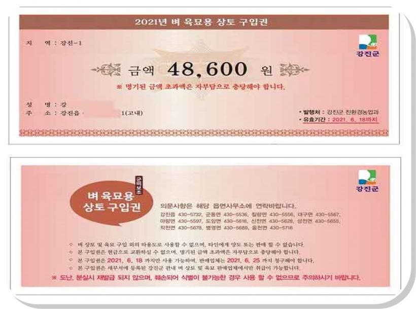 ±¸ÀÔ±ÇÀº ŸÀÎ »ç¿ëÀÌ ºÒ°¡Çϵµ·Ï ¹èºÎÁö¿ª ÀϷùøÈ£, ÁÖ¼Ò, ¼º¸í, »ý³â¿ùÀÏ, ÇØ´ç º¸Á¶±Ý¾×, À§¡¤º¯Á¶±â´ÉÀÌ Æ÷ÇԵǾî ÀÖÀ¸¸ç, À¯È¿±â°£Àº ¿À´Â 6¿ù 18ÀϱîÁöÀÌ´Ù.