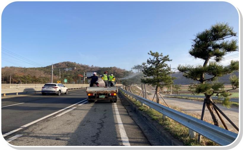À̹ø º´ÇØÃæ ¹æÁ¦´Â ¸ÕÀú ±¹µµ 13È£¼±(¼Ò³ª¹« 1,114ÁÖ), ±ºµ¿ È£°è¸®~ÀÛõ~¼ºÀü ǮġÀç(º¢³ª¹« 3,878ÁÖ), ±¹µµ 2È£¼±(°¡½Ã³ª¹« 3,406ÁÖ) µî ÃÑ 95km ±¸°£¿¡ ½ÄÀçµÈ °¡·Î¼ö 14,477±×·ç¿¡ »ìÃæ¡¤»ì±ÕÁ¦¿Í ¿µ¾çÁ¦¸¦ È¥ÇÕ Â÷·®¿¡ ÀÇÇÑ Áö»óºÎ »ìÆ÷ ¹æ½ÄÀ¸·Î ÁøÇàÇÑ´Ù.