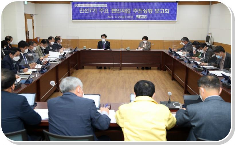 À̽¿Á ±º¼ö´Â ¡°¹Î¼± 7±â ±ºÁ¤ ¸ñÇ¥¸¦ µÇ»õ±â°í, ÁÖ¿ä Çö¾È»ç¾÷ ÃßÁø»óȲ¿¡ ´ëÇÑ Ã¼°èÀûÀÎ °ü¸®¿Í Á¡°ËÀ¸·Î ¸ðµç »ç¾÷ÀÌ Á¤»óÀûÀ¸·Î ÃßÁøµÉ ¼ö ÀÖµµ·Ï Àü °ø¹«¿ø°ú ÇÔ²² ÃÖ¼±À» ´ÙÇϰڴ١±°í ¹àÇû´Ù.