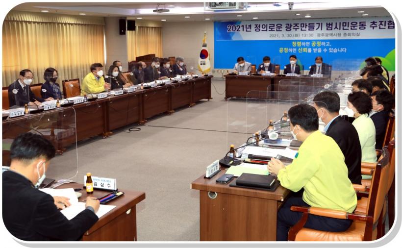 ±¤Áֽô 30ÀÏ ½Ãû ÁßȸÀǽǿ¡¼ ½Ã¹Î»çȸ´Üü, ÀÚ¿øºÀ»ç¼¾ÅÍ, À¯°ü±â°ü ´ëÇ¥ ¹× ÀÚÄ¡±¸ °ü°èÀÚ µî 34¸íÀÌ Âü¿©ÇÑ °¡¿îµ¥ ¡®Á¤ÀÇ·Î¿î ±¤ÁÖ¸¸µé±â ¹ü½Ã¹Î¿îµ¿ ÃßÁøÇùÀÇȸ¡¯¸¦ °³ÃÖÇß´Ù.
