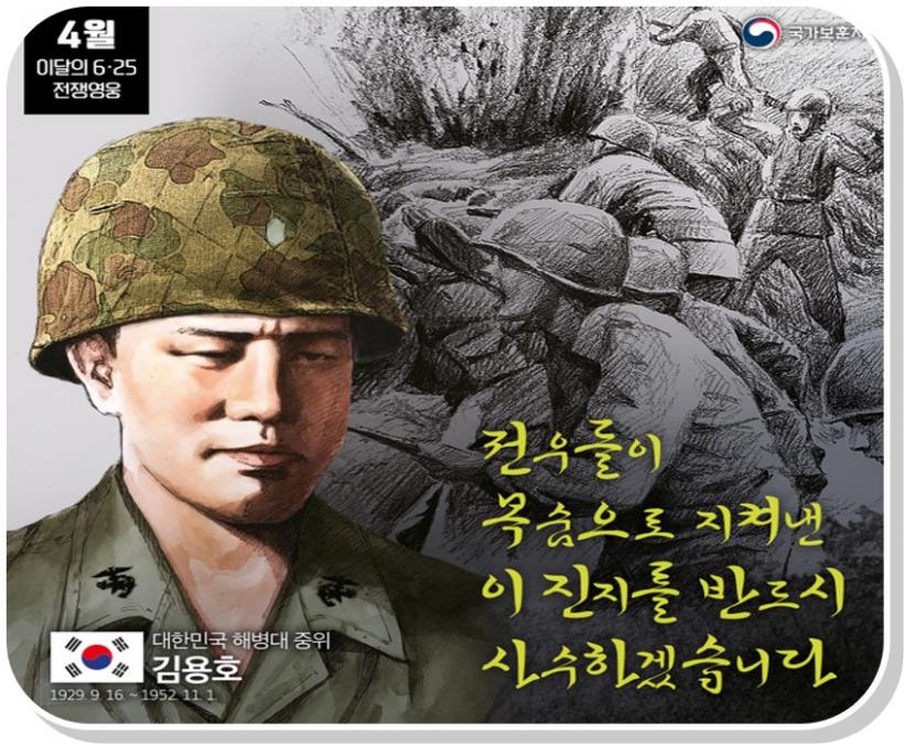 ¡¸4¿ùÀÇ 6¡¤25 ÀüÀ￵¿õ¡¹ÀÎ ±è¿ëÈ£ ÇØº´´ë ÁßÀ§´Â 6¡¤25ÀüÀï ÁßÀÎ 1952³â Áß°ø±º ´ë±Ô¸ð °ø¼¼ ¶§, °æ±âµµ Àå´ÜÁö±¸ »çõ° ÀüÃÊÁøÁö¿¡¼ Áõ°µÈ 1°³ ¼Ò´ëÀÇ º´·ÂÀ¸·Î ´ë´ë ±Ô¸ðÀÇ Áß°ø±ºÀ» ¸Â¾Æ ¹éº´Àü±îÁö ¹úÀÌ¸ç °á»çÀûÀ¸·Î ÁøÁö¸¦ »ç¼öÇß´Ù. ÇÏÁö¸¸ Áß°ø±ºÀ» °ÝÅðÇÏ´Â °úÁ¤¿¡¼ ¼Ò´ë¿øµéÀÌ 70¸íÀ̳ª Àü»çÇÑ °ÍÀ» È®ÀÎÇÏ°í »ç¶ûÇÏ´Â ºÎÇϵéÀ» ÀÒÀº ÁËÃ¥°¨¿¡ ºÎÇÏ ÇØº´µéÀÌ Àáµç °íÁö¿¡¼ Á×À½À¸·Î ¼ÓÁËÇÑ´Ù´Â ¸¶À½À¸·Î ¾ÈŸ±õ°Ô ÀÚ°áÇß´Ù.