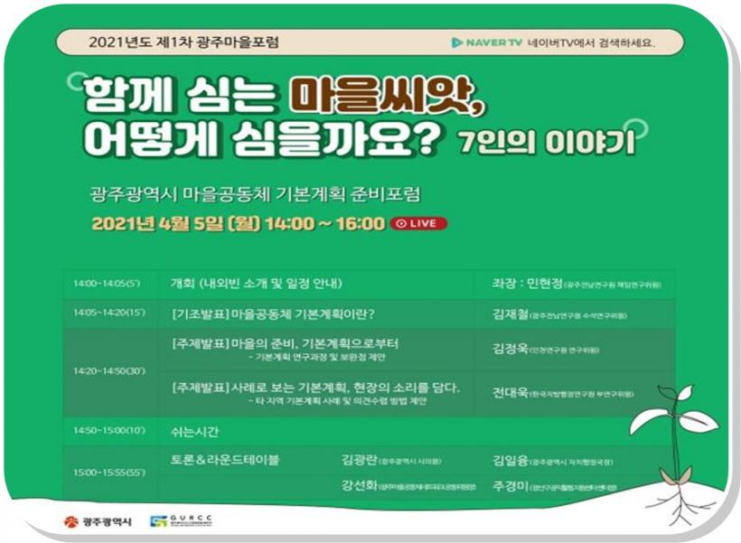 [°ø°£´º½º = ±è¼ö±Ù±âÀÚ] ±¤ÁÖ±¤¿ª½Ã´Â ¿À´Â 5ÀÏ ¿ÀÈÄ 2½ÃºÎÅÍ 4½Ã±îÁö ¡®Á¦1Â÷ ±¤ÁÖ¸¶À»Æ÷·³ : ±¤ÁÖ¸¶À»°øµ¿Ã¼ ±âº»°èȹ Áغñ¡¯¸¦ ¿Â¶óÀÎÀ¸·Î °³ÃÖÇÑ´Ù.