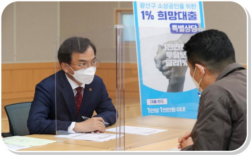 ±¤»ê±¸±â¾÷ÁÖÄ¡ÀǼ¾ÅÍ¿¡¼ ÁøÇàÇÑ »ó´ã¿¡¼ ±è ±¸Ã»ÀåÀº ¡®1% Èñ¸Á´ëÃ⡯À» ¼Ò°³ÇÏ¸ç ½Åû¼ ÀÛ¼ºÀ» µ½°í »ó´ãÈ®Àμ¸¦ ¹ß±ÞÇß´Ù. ÀÌ¿Í ÇÔ²² ¼Ò»ó°øÀεéÀÇ ´ëÃâÀÚ±Ý È°¿ë °èȹ, »óȯ °èȹ µîÀ» µè°í, Äڷγª19·Î ¸Â´Ú¶ß¸° ¾î·Á¿î »óȲ µî ÇöÀåÀÇ ¸ñ¼Ò¸®µµ Ã»ÇØ µé¾ú´Ù.