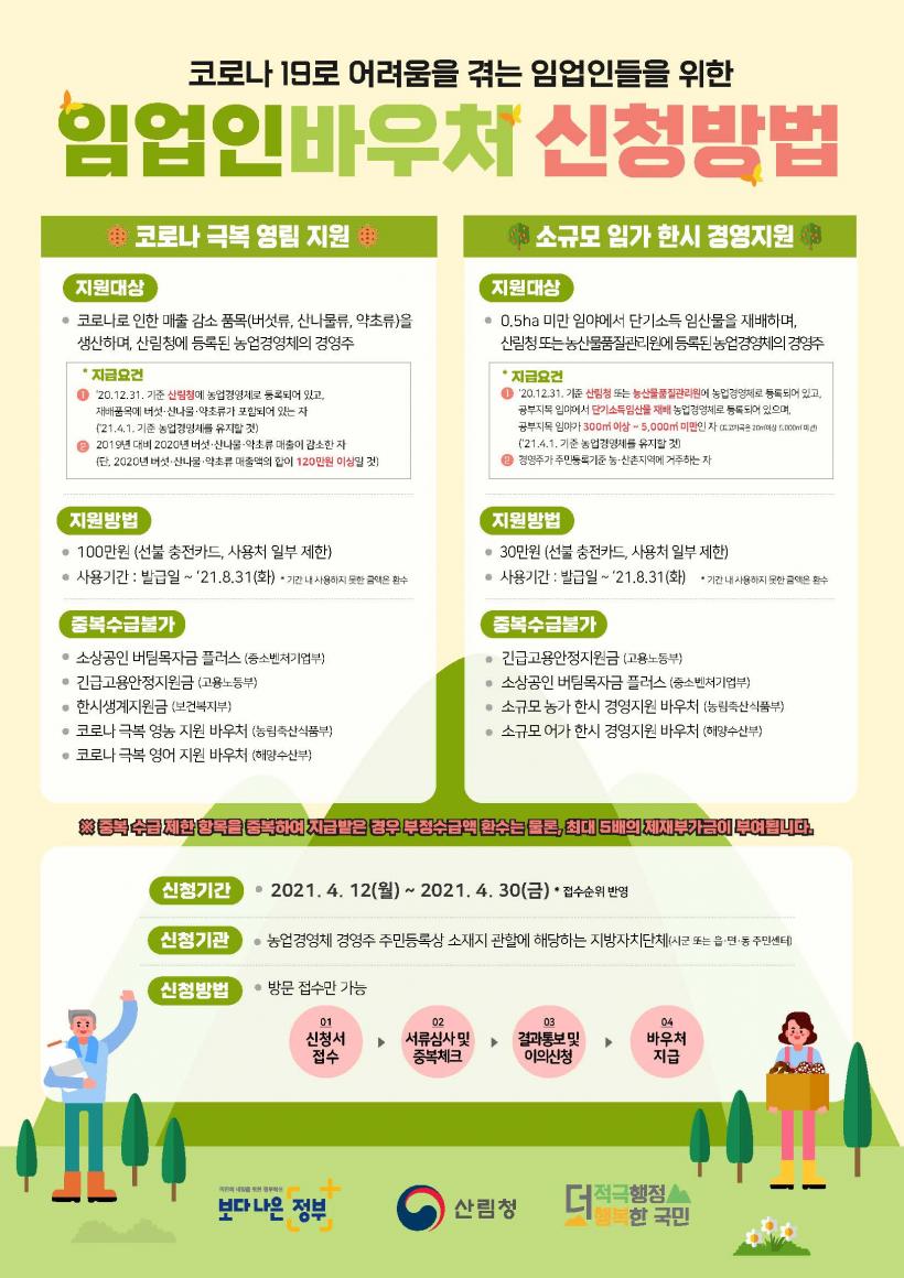 ÀÓ¾÷ÀÎ ¹Ù¿ìó´Â ¿À´Â 4¿ù 30ÀϱîÁö ½ÅÃ»ÇØ¾ß ÇÑ´Ù. ½ÅºÐÁõ°ú Áõºù¼·ù¸¦ ±¸ºñÇØ °æ¿µÁÖ ÁÖ¼ÒÁö À¾¸é»ç¹«¼Ò·Î Á÷Á¢ ¹æ¹®ÇÏ¸é µÈ´Ù. »ê¸²Ã» ½É»ç¸¦ ÅëÇØ ÃÖÁ¾ ´ë»óÀÚ·Î È®Á¤µÇ¸é 5¿ù 17ÀϺÎÅÍ ³óÇùÀ» ÅëÇØ ¼±ºÒ ÃæÀüÄ«µå¸¦ ¼ö·ÉÇÒ ¼ö ÀÖ´Ù. 8¿ù 31ÀϱîÁö »ç¿ëÇÏÁö ¾ÊÀ» °æ¿ì ¹Ù¿ìó Àܾ×ÀÌ È¯¼öµÇ¹Ç·Î À¯ÀÇÇØ¾ß ÇÑ´Ù.
