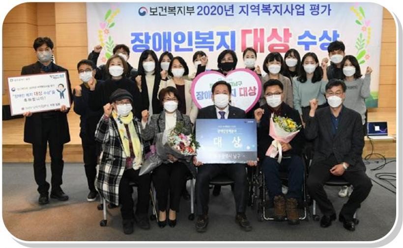ÇÑÆí ³²±¸´Â Áö³ÇØ º¸°Çº¹ÁöºÎ¿¡¼ óÀ½À¸·Î ½Ç½ÃÇÑ ¡®2020³â Àå¾ÖÀÎ º¹ÁöÆò°¡¡¯¿¡¼ Àå¾ÖÀÎ 157¸í¿¡°Ô ÀÏÅ͸¦ Á¦°øÇϰí, º¹Áö¼ºñ½º ±Ç¸®±¸Á¦ ´ë»óÀÚ 1,578¸íÀ» ¹ß±¼ÇØ °¢Á¾ ¼ºñ½º¿Í Áö¿ø±Ý ÇýÅÃÀ» Á¦°øÇÏ´Â µî °¢Á¾ ¼º°ú¸¦ ¹ÙÅÁÀ¸·Î Àü±¹ 1À§ ÀÚ¸®¿¡ ¿Ã¶ú´Ù.