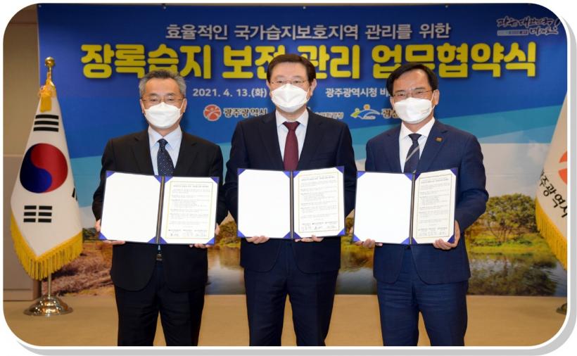 [°ø°£´º½º = ±è¼ö±Ù±âÀÚ] ±¤ÁÖ±¤¿ª½Ã¿Í ¿µ»ê°À¯¿ªÈ¯°æÃ», ±¤»ê±¸°¡ ±¹³» ÃÖÃÊ µµ½É ¼Ó ±¹°¡½ÀÁö º¸È£Áö¿ªÀ¸·Î ÁöÁ¤µÈ Àå·Ï½ÀÁöÀÇ »ýÅÂ°è º¸È£¿Í ȯ°æº¸ÀüÀ» À§ÇØ ¼ÕÀ» ¸ÂÀâ¾Ò´Ù.