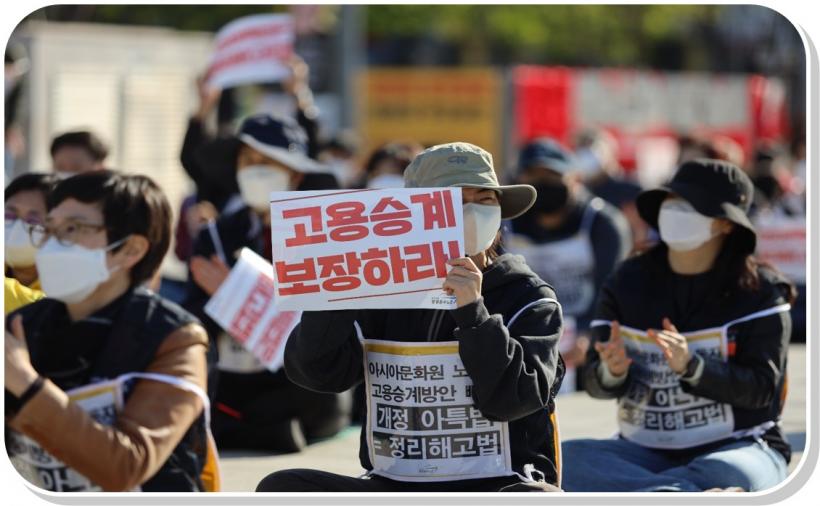 [°ø°£´º½º = ±è¿îö±âÀÚ] °ø°ø¿î¼ö³ëÁ¶ ±¤ÁÖÀü³²ÁöºÎ (ÀÌÇÏ ¡®³ëµ¿Á¶ÇÕ¡¯)¿Í ¾Æ½Ã¾Æ¹®È¿øÁöȸ´Â Áö³ 4¿ù 14ÀÏ 5¡¤18 ¹ÎÁÖ±¤Àå¿¡¼ ¾ÆÆ¯¹ý °³Á¤¾ÈÀÌ Åë°úµÈ ÈÄ 250¸í ¾Æ½Ã¾Æ¹®È¿ø ³ëµ¿ÀÚµéÀÌ ´ë·®ÇØ°í »çÅ¿¡ ¸ô·ÈÀ½¿¡µµ ÀÌ »çÅÂÀÇ ÁÖü Áß À¯°¨À» Ç¥¸íÇÏ°í ³ëÁ¶¿Í ´ëÈÇÏ´Â À̰¡ ¾ø´Â Áö±ÝÀÇ »óȲÀ» ±ÔźÇϰí, ¾Æ½Ã¾Æ¹®È¿ø ³ëµ¿ÀÚ °í¿ë½Â°è¸¦ Ã˱¸ÇÏ´Â °áÀÇ´ëȸ¸¦ ÁøÇàÇß´Ù.