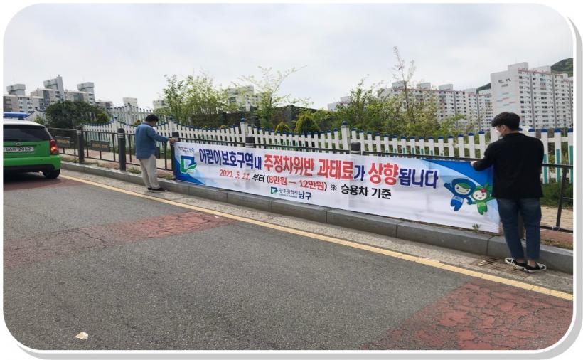 ³²±¸´Â ¾î¸°ÀÌ º¸È£±¸¿ª ³» ÁÖÁ¤Â÷ À§¹Ý °úÅ·ᰡ Å« ÆøÀ¸·Î ÀλóµÇ¸é¼ °úÅÂ·á ºÎ°ú¿¡ ´ëÇÑ ¹Ý°¨ÀÌ Å¬ °ÍÀ¸·Î º¸°í, µµ·Î±³Åë¹ý ½ÃÇà·É °³Á¤¾ÈÀÌ È¿·ÂÀ» ¹ßÈÖÇϱâ Àü±îÁö °ü³» °÷°÷¿¡ Çö¼ö¸·À» ³»°É°í °ü³» ÁֹεéÀ» ´ë»óÀ¸·Î Àû±ØÀûÀÎ ¾È³» ¹× È«º¸È°µ¿À» Àü°³Çϰí ÀÖ´Ù.